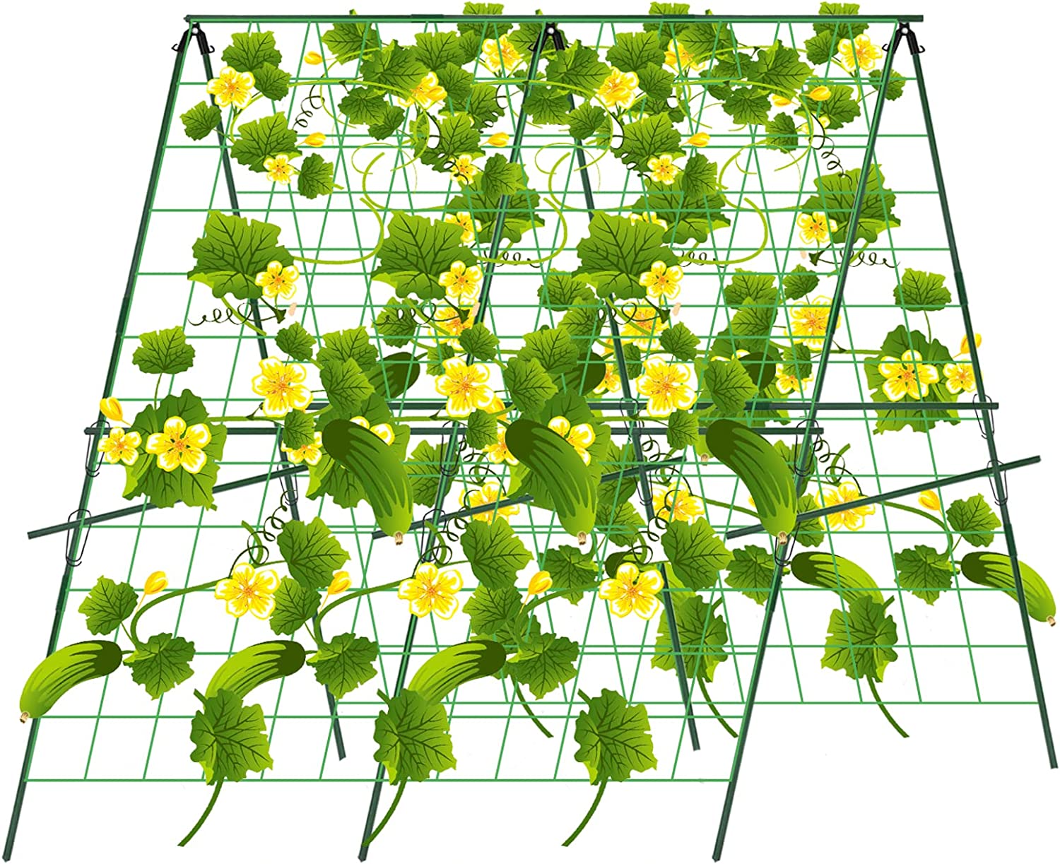 • 【Widely Application】A trellis provides support for vegetables such as cucumbers, peas, zucchini, beans, tomatoes, flowers. The cucumber trellis is widely used in garden and yard. It helps you utilize most of limited garden space.