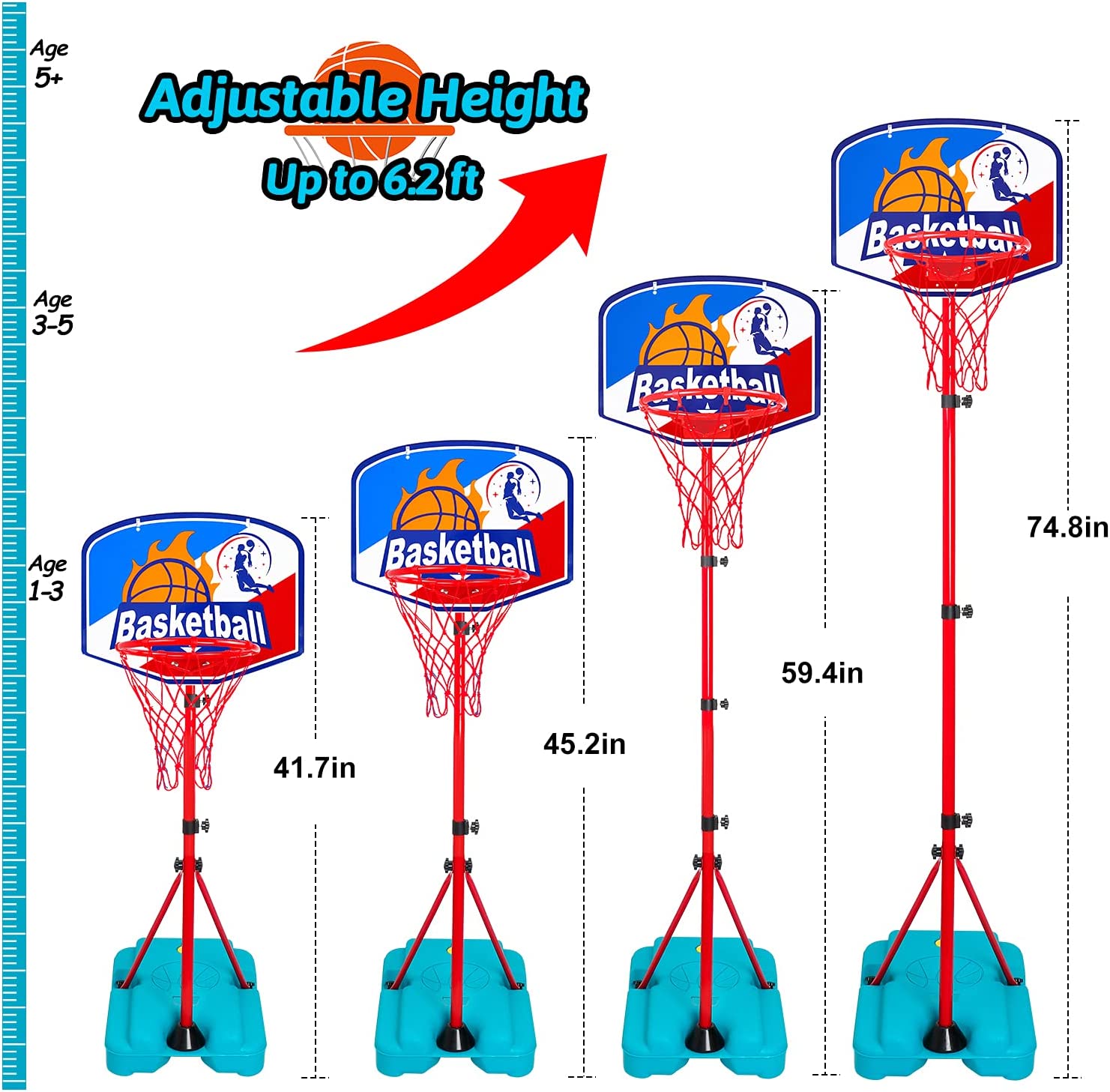 • 【Height – Adjustable】The basketball game is fun and exciting for kids all ages. Our basketball hoops for kids can be adjusted from 2.9FT – 6.2FT, suitable for toddlers and older kids 3-8. You can make different height stands for your child. Great outdoor and indoor toys for boys 3 4 5 year old and up.