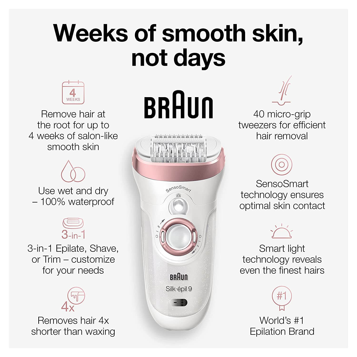 • LONG-LASTING RESULTS: epilate once and get smooth skin for up to 4 weeks with America’s #1 epilator brand