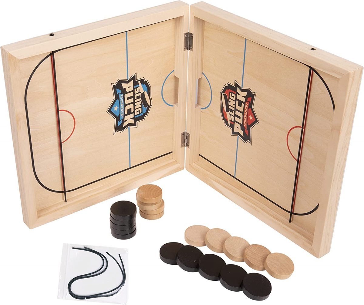 • AN IDEAL PRESENT : Fast slinging table hockey game with a portable foldable design is ideal for family entertainment, outdoor camping, or office interaction. This wood sling puck game set is portable & lightweight allowing you to play it wherever you want to play. Hockey puck game is ideal for a variety of occasions, including Christmas gifts, children’s party gifts, birthday gifts, coffee table decor, etc. So, what are you waiting for? Get this lovely fast track game board right away.