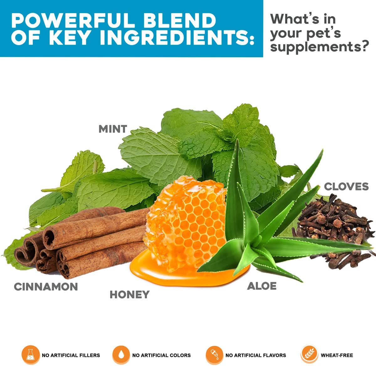 • 🐈 SAFE ORAL CARE – A unique blend of human-grade ingredients including Peppermint, Cloves, Honey, Cinnamon and Aloe Vera work together to naturally balance oral chemistry. Also soothes irritations. TOTALLY SAFE! NO artificial ingredients, flavors, or colors. Alcohol, wheat, and soy free. Safe to use with most prescription medications. Made in the USA.