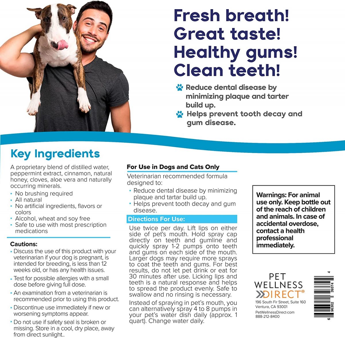 • 🐈 STOP ORAL DISEASE – Keeping your pet’s teeth clean will prevent build-up of tartar and plaque which causes bad breath, horrible tooth decay and oral disease. VetSmart Formulas Total Oral Care Spray is the easiest-to-use cat and dog dental care solution in one bottle. Fresh breath, clean teeth and healthy mouths are now a few sprays away.