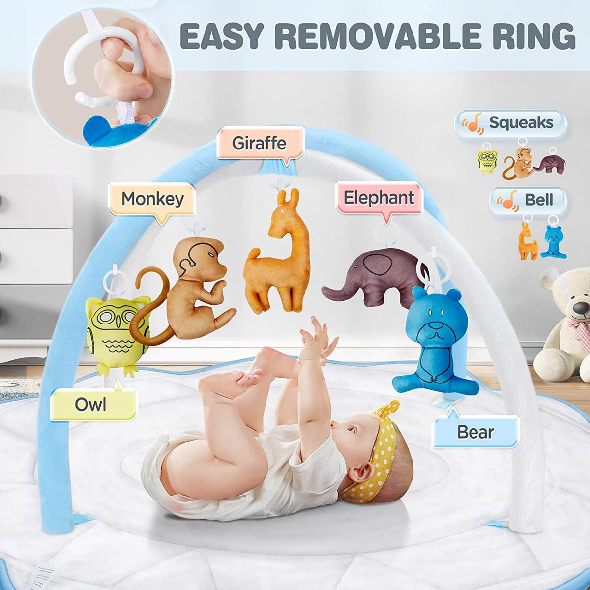 • Multi-Function Play Gym- 5 in 1 Play Mat Accompany Baby’s Growth – This plush play mat can be a baby gym, baby nest, play mat, or fence to meet the growing needs of the baby. The best combination provides a baby with a great and safe activity gym for tummy time play, and rest from birth to toddler. It helps the baby refine motor skills through visual tracking, grasping, and reaching for various hanging toys.