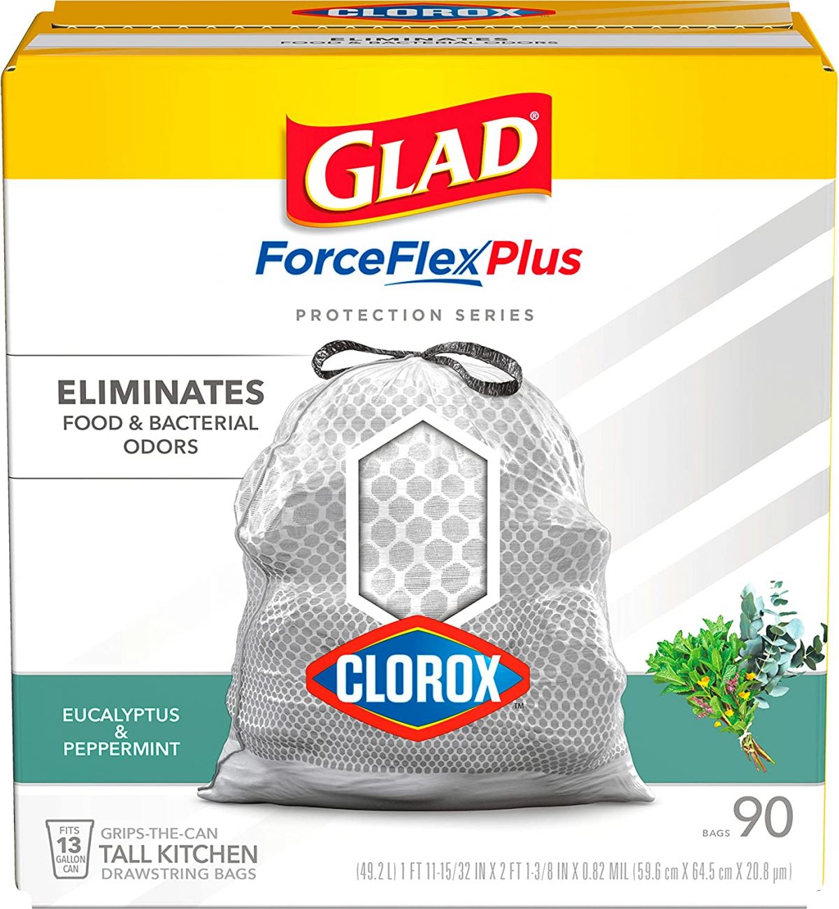• FORCE FLEX PLUS STRENGTH: Glad Force Flex Plus provides superior strength with two-layer protection; Leak Guard plus RipGuard provide protection against leaks, rips and tears; Package may vary