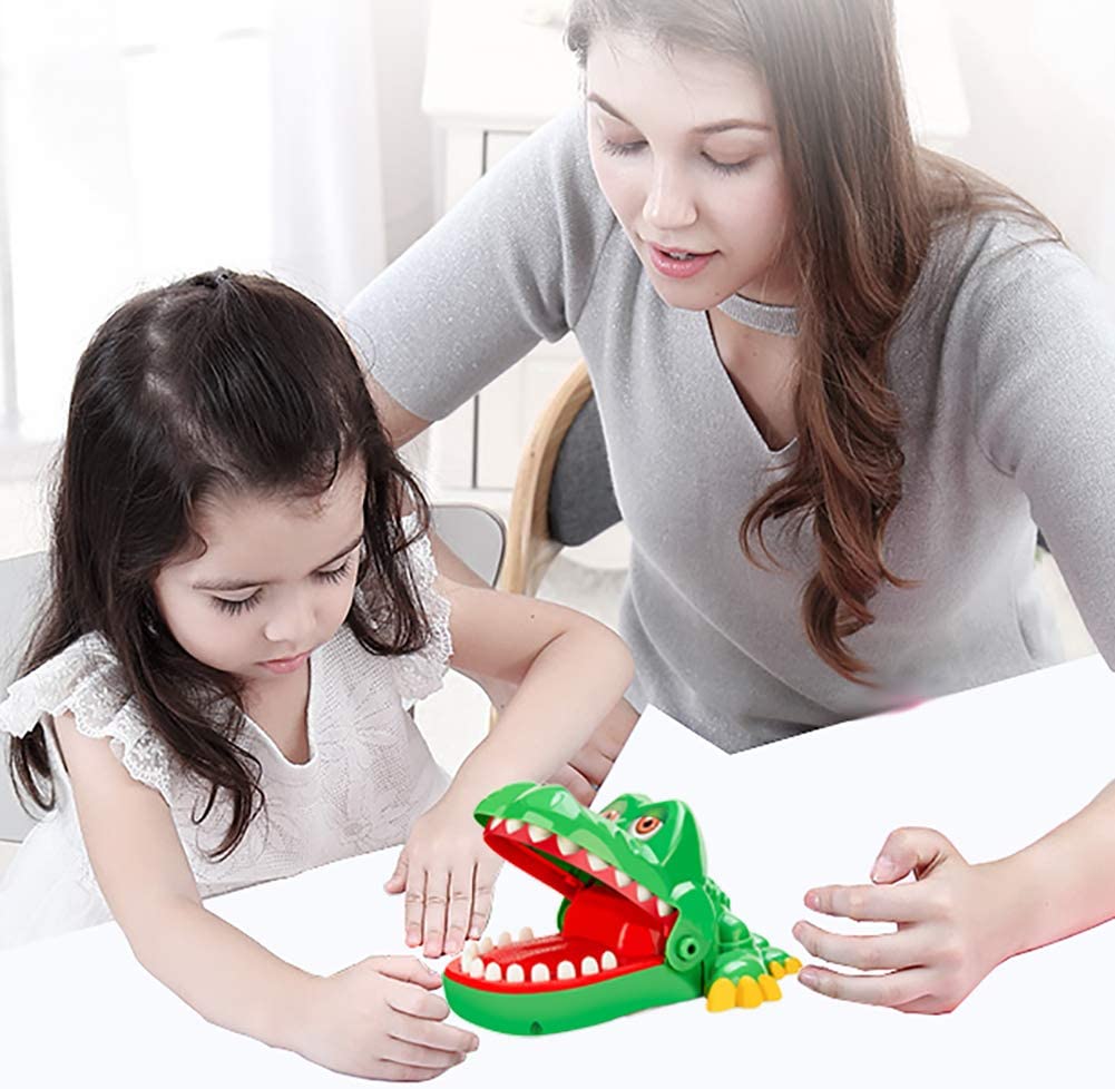 • EASY GAME: With no assembly required, this game is quick and easy to set up, each turn players try their luck on clicking the teeth, if unlucky and choose the wrong tooth, then the crocodile will suddenly close it’s mouth and the player get loses.