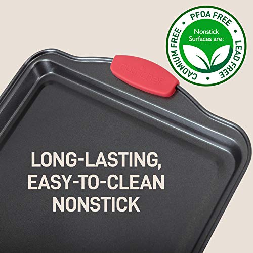 • 3-PIECE SET: NutriChef 3-piece nonstick cookware set includes the small, medium, and large size of cookie pans. These are a flexible, stylish, and non-stick carbon steel bakeware set with red silicone handles