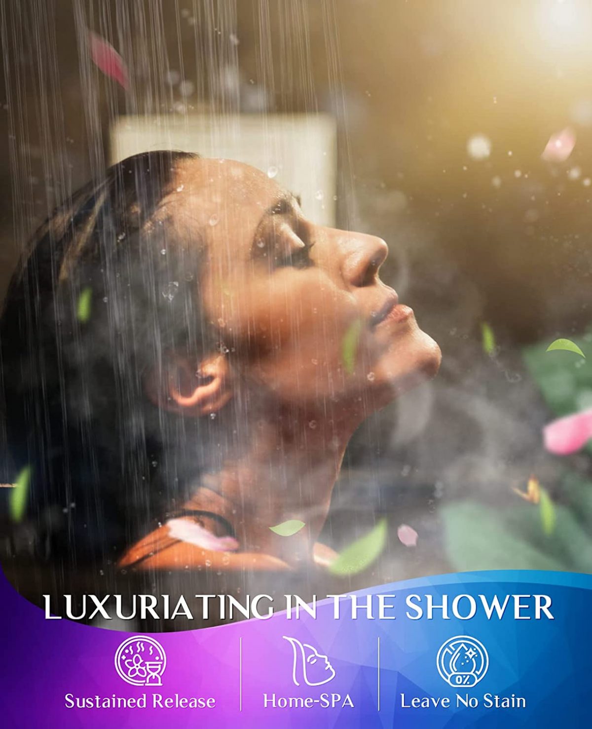 • Last long, Sense Strong: Our shower tablets contain twice the amount of pure essential oils per tablet compared to other brands to ensure that the fragrance lingers and lasts long. With a higher density and containing no seeds or dry flowers, they won’t break during delivery and won’t clog your drains during use.