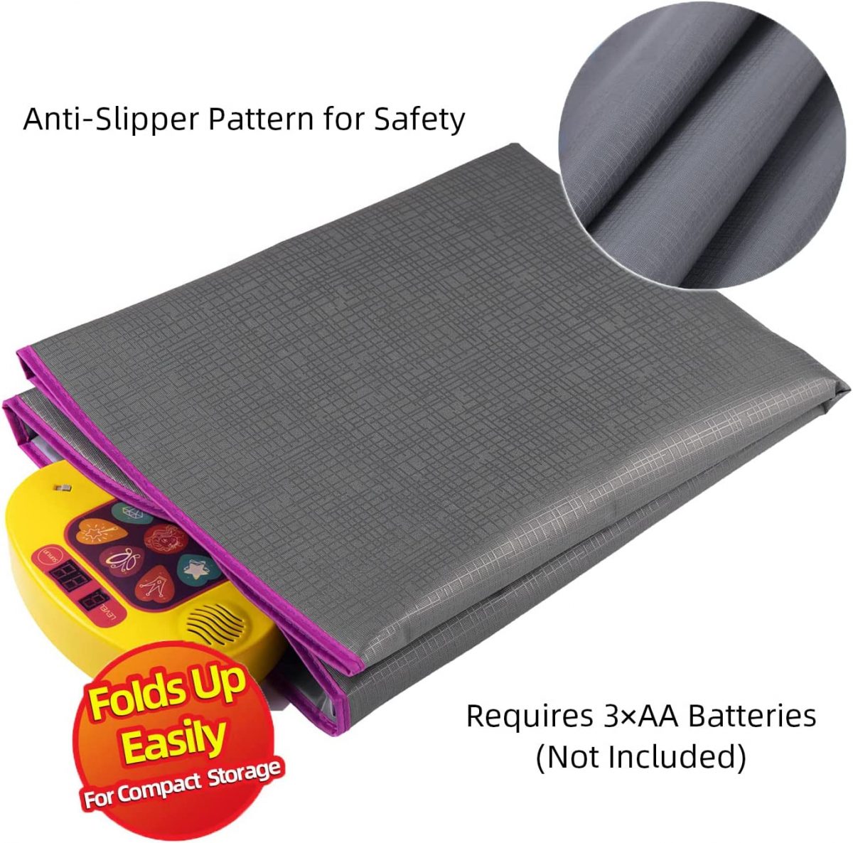 • 🎶【PORTABLE & EASY to STORE】 Size 35.4″X36.6″. Folds up easy and stores nicely in a closet or under the bed. This makes collecting toys easier for parents and kids. The dance mat can perfectly fit into a bag for outing. Enjoy the dancing game both indoor & outdoor!