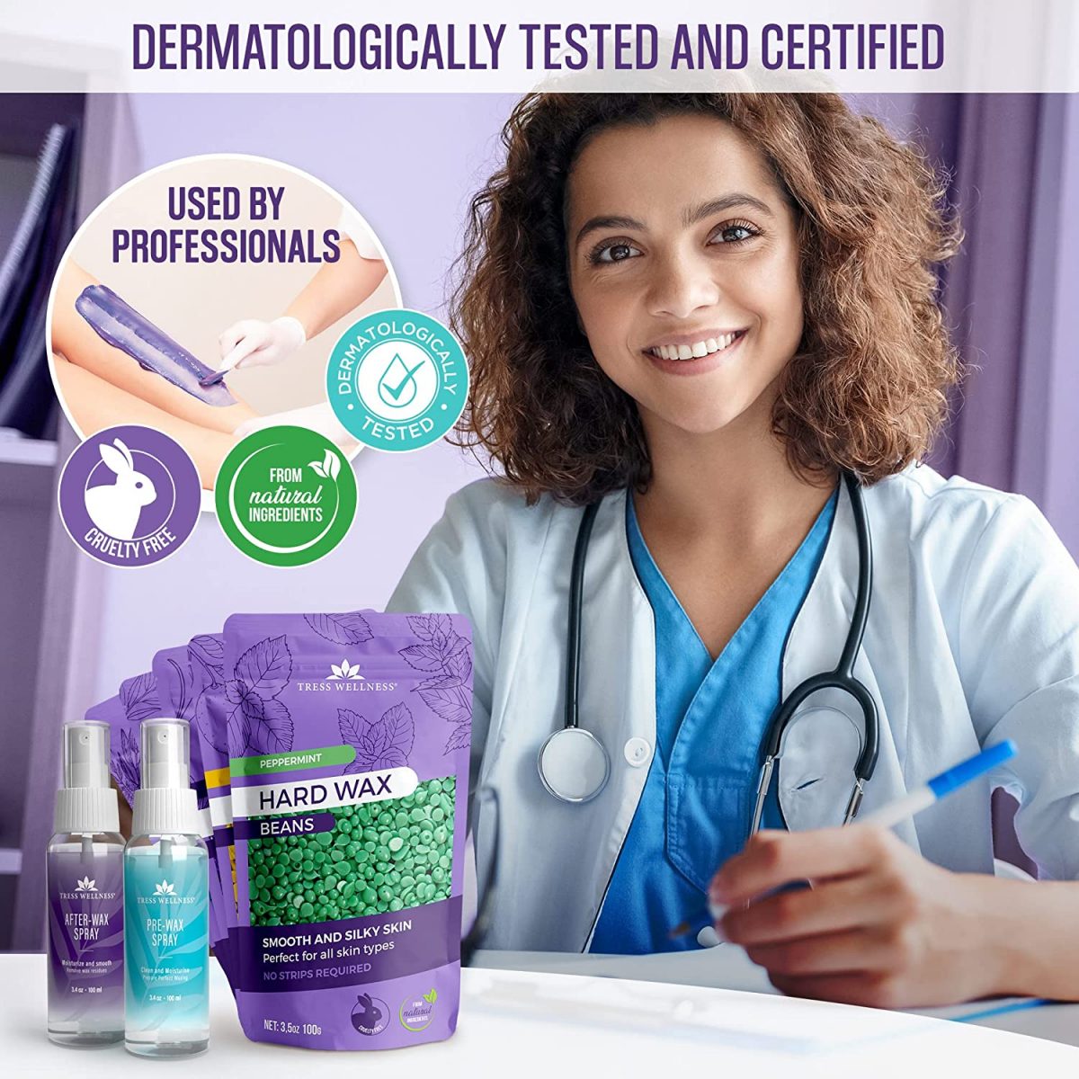 • Dermatologically Tested And Certified – Our specially formulated hard waxes are dermatologically tested and certified so we can ensure they are safe for all skin types. Our waxes are designed with natural ingredients to be fast melting and have a smoother application.