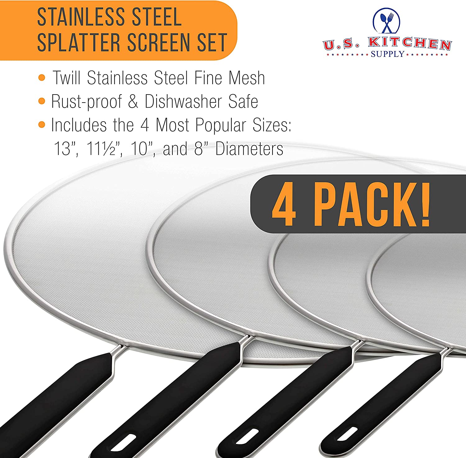 U.S. Kitchen Supply Set of 4 Classic Splatter Screens